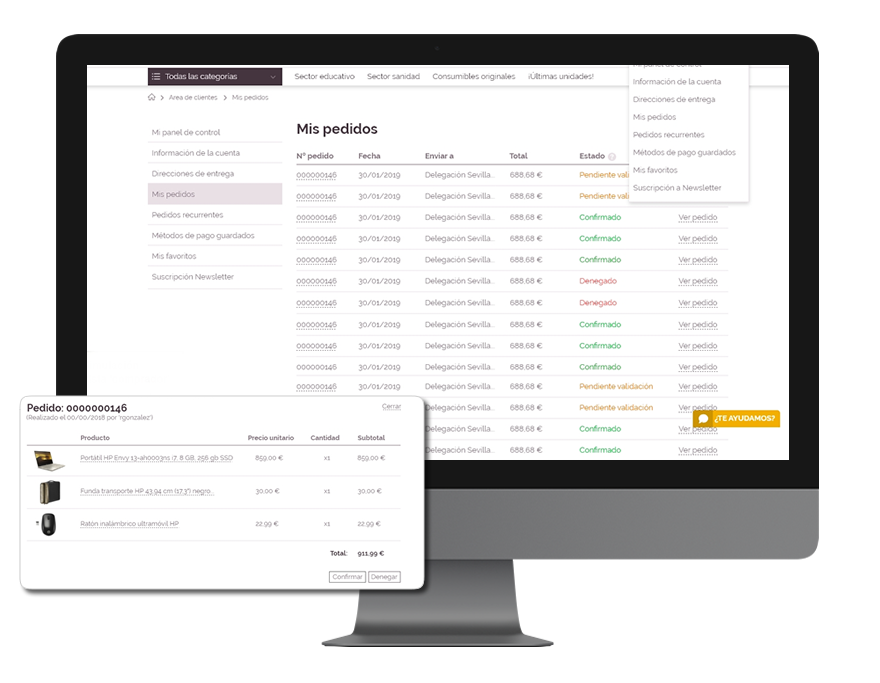 Confía tu extranet en una plataforma usable e intuitiva, que además está sincronizada con toda la información y procesos de tu negocio. Unifica todos tus canales de venta y tu sistema ERP, automatizando la gestión de las compras, los productos y stocks en tiempo real.
